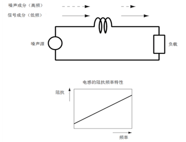 因此,如果將電感串聯插入噪聲通道,頻率較低的信號成分將容易通過,頻率較高的噪聲成分將不易通過。